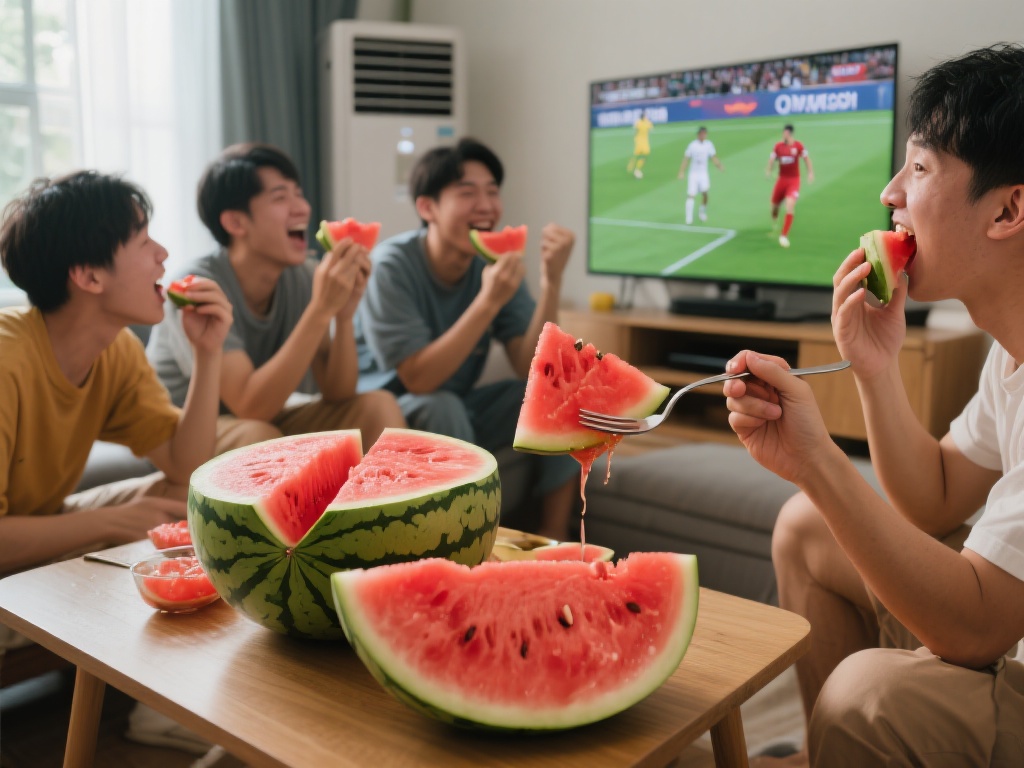 《西瓜看球:炎夏中的别样体验》 夏天,向来是一个充满热情与活力的季节。蝉鸣伴随着烈日,绿意盎然的枝头诉说着生命的蓬勃,而与炎夏最相得益彰的活动,莫过于观球赛与吃西瓜这两件事。将两者结合,便成就了一个